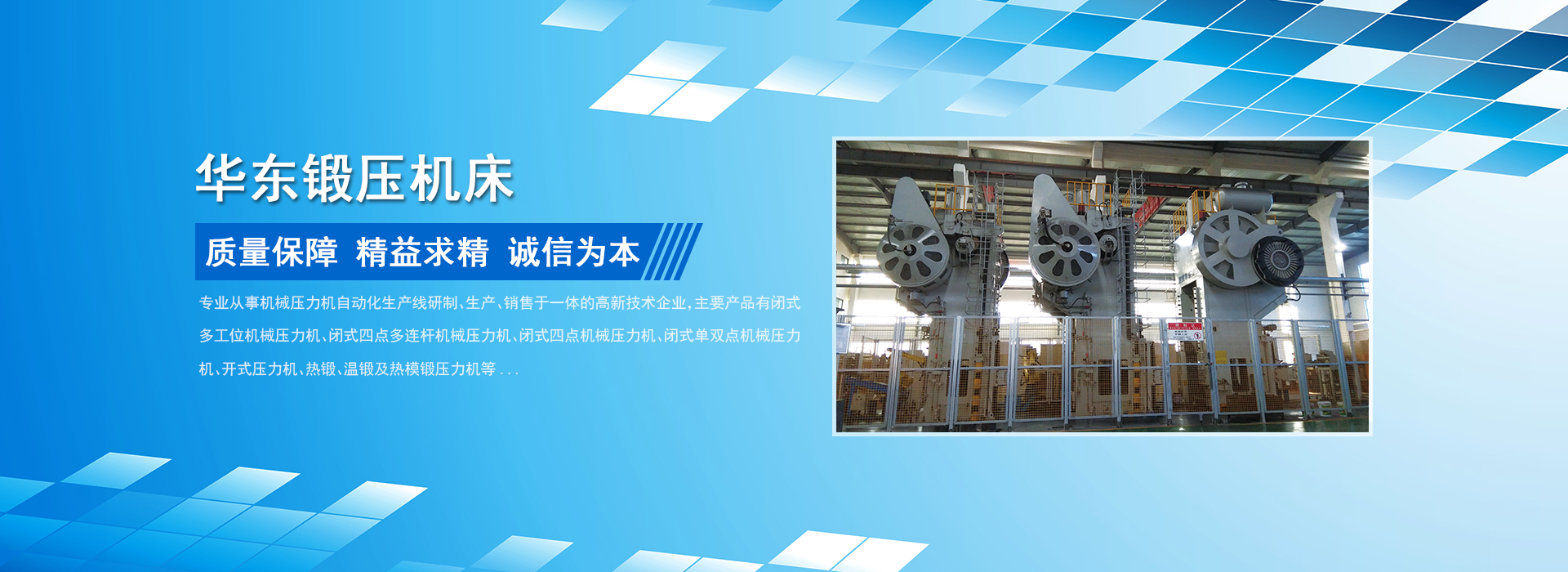 榮成華東鍛壓機(jī)床股份有限公司(榮成東源鍛壓機(jī)械有限公司)座落在山東半島的最東端,海陸空交通方便,是專(zhuān)業(yè)從事鍛壓設(shè)備及自動(dòng)化的研發(fā)、生產(chǎn)、銷(xiāo)售,并能為客戶(hù)提供個(gè)性化、多樣化、系統(tǒng)化服務(wù)的高新技術(shù)型企業(yè),專(zhuān)精特新小巨人企業(yè)。企業(yè)通過(guò)工信部的兩化融合、質(zhì)量、環(huán)境、職業(yè)健康及知識(shí)產(chǎn)權(quán)管理體系認(rèn)證,“華鍛”牌被授予山東省名牌、山東優(yōu)質(zhì)品牌產(chǎn)品。公司總占地面積250000多平方米,一期廠(chǎng)房建筑面積100000平方米,現(xiàn)有員工200余人,其中工程技術(shù)人員36人。公司各種加工設(shè)備齊全,工藝、檢測(cè)手段先進(jìn),擁有主要設(shè)備300余臺(tái)套??缮a(chǎn)閉式多工位機(jī)械壓力機(jī)、閉式四點(diǎn)多連桿機(jī)械壓力機(jī)、閉式四點(diǎn)機(jī)械壓力機(jī)、閉式單、雙點(diǎn)機(jī)械壓力機(jī)、開(kāi)式壓力機(jī)、熱鍛壓力機(jī)及沖壓、鍛造自動(dòng)化設(shè)備等百余個(gè)規(guī)格型號(hào)的產(chǎn)品...