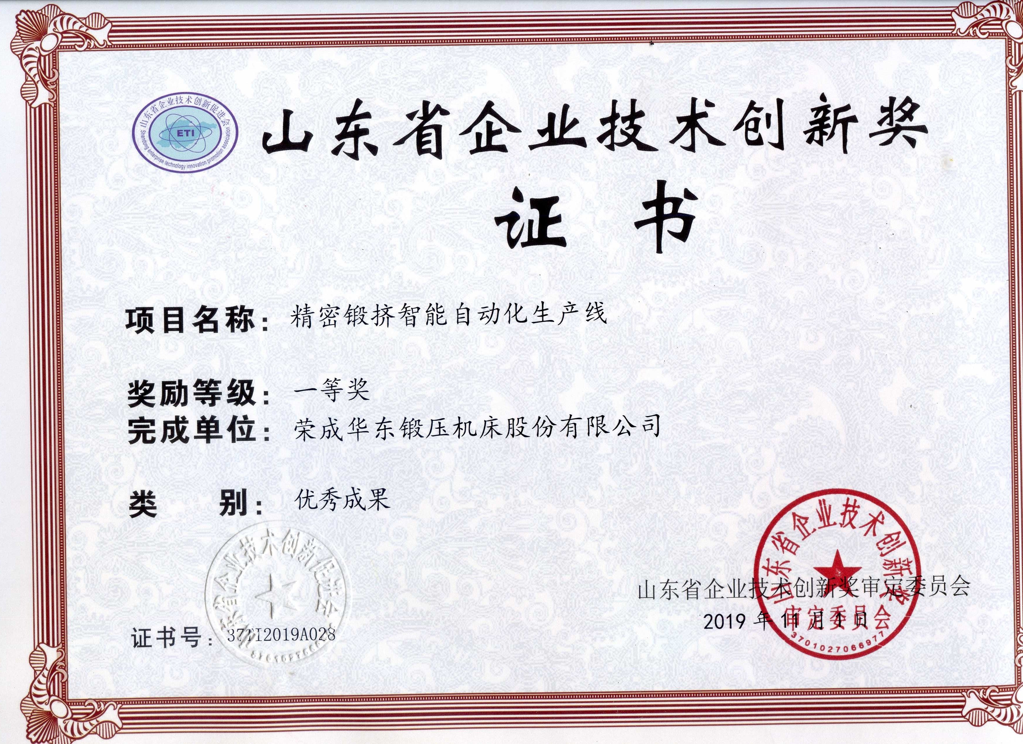 山東省企業(yè)技術(shù)創(chuàng)新獎(jiǎng)-大型高速機(jī)械壓力機(jī)自動(dòng)化線