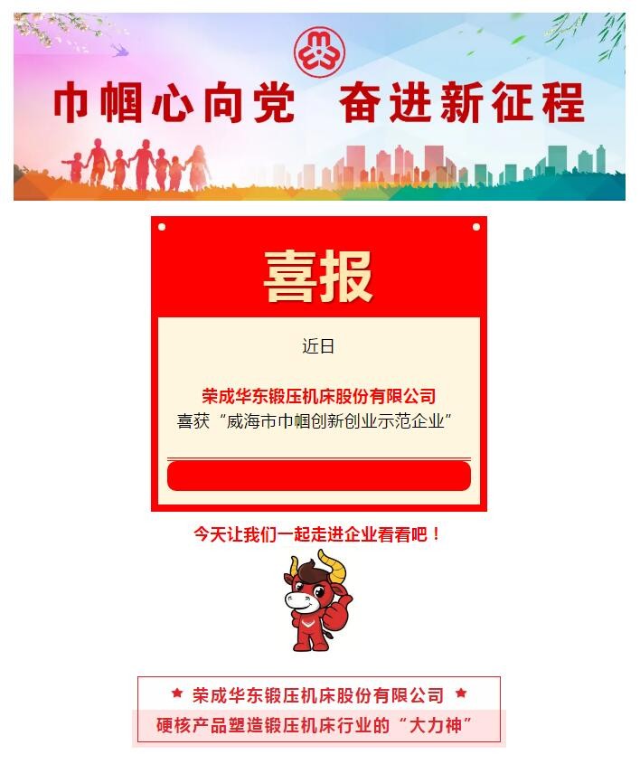 榮成華東鍛壓機床股份有限公司是裝備產(chǎn)業(yè)領(lǐng)域?qū)I(yè)從事機械壓力機及其自動化生產(chǎn)線研制、生產(chǎn)、銷售的高新技術(shù)企業(yè),是全國鍛壓行業(yè)知名企業(yè),獲批山東省科技型中小企業(yè)、山東省技術(shù)創(chuàng)新示范企業(yè)、山東省“專精特新”中小企業(yè)等稱號。公司生產(chǎn)的“華鍛”圖片牌機械壓力機被授予山東省名牌、山東優(yōu)質(zhì)品牌產(chǎn)品。
